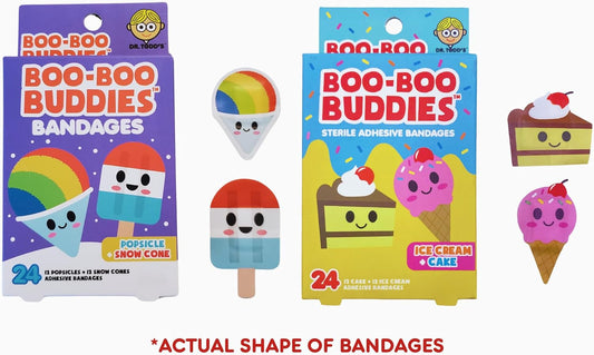 2-Pack Boo Boo Buddies™ Bandages 48 Ct | Fun Ice Cream & Snowcone + Ice Cream & Cake Shapes | Waterproof, Latex-Free, First Aid for Kids & Sensitive Skin