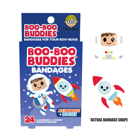 Astronaut & Rocket Bandages for Kids – Waterproof, Latex-Free, 24 Count
