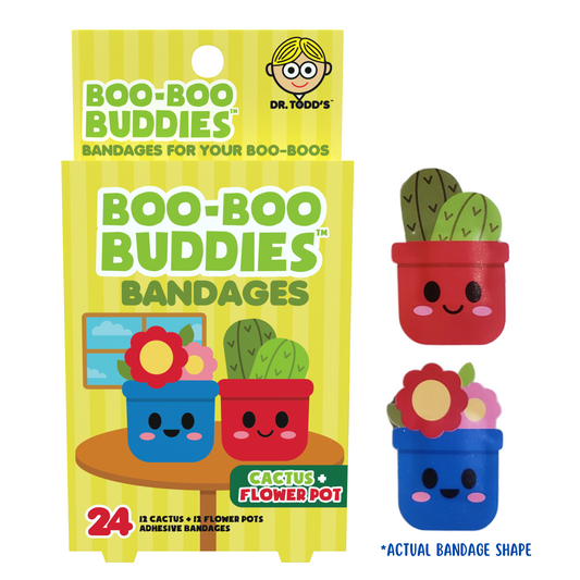 Cactus & Flower Pot Bandages for Kids – Waterproof, Latex-Free, 24 Count | Dr. Todd’s Boo-Boo Buddies®