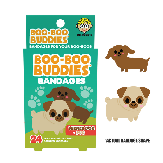 Wiener Dog & Pug Bandages for Kids – Waterproof, Latex-Free, 24 Count