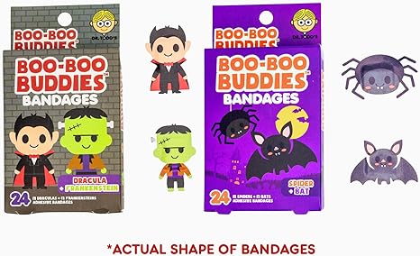 2-Pack Boo Boo Buddies™ Dracula + Frankenstein & Spider + Bat Bandages Bundle – 48 Ct | Fun Halloween Bandages for Kids & Adults, Waterproof, Latex-Free, Sensitive Skin-Friendly, First Aid Kit Essential2-Pack
