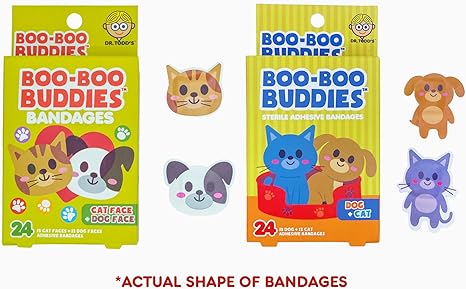 2-Pack Boo Boo Buddies™ Dog Face + Cat Face & Dog + Cat Shape Bandages – 48 Ct | Fun Animal Shapes, Waterproof, Latex-Free for Kids & Sensitive Skin | Perfect First Aid for Pets & Animal Lovers