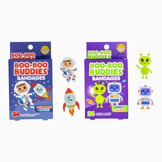 2-Pack Boo Boo Buddies™ Astronaut + Rocket and Robot + Alien Shape Bandages – 48 Ct | Waterproof, Latex-Free Kids' Bandages for First Aid Kits