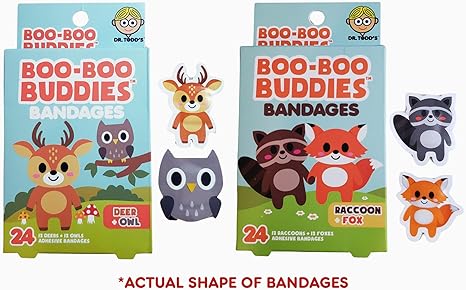 2-Pack Deer + Owl and Raccoon + Fox Bandages – 24 Ct Each | Fun Shapes for Kids' First Aid Kits