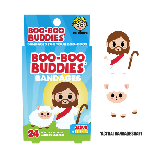 Jesus & Sheep Bandages for Kids – Waterproof, Latex-Free, 24 Count | Dr. Todd’s Boo-Boo Buddies®