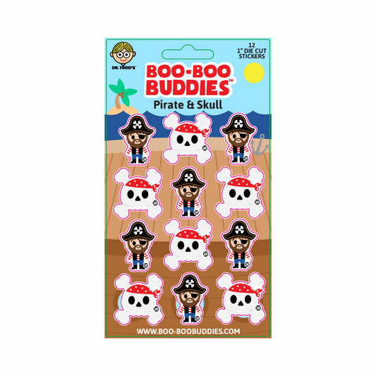 Boo Boo Buddies™ Pirate & Skull Sticker Sheet – 12 Cute Pirate Stickers for Kids, Crafts, Scrapbooks & Party Favors
