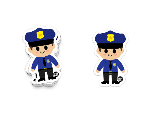 Boo Boo Buddies™ Policeman Sticker – Cute Kawaii Police Officer Vinyl Decal, Waterproof 3″ Die‑Cut