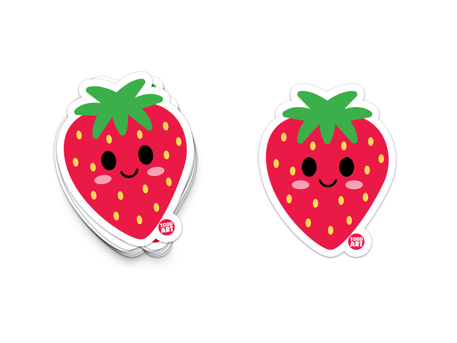 Boo Boo Buddies™ Strawberry Sticker – Cute Kawaii Vinyl Sticker, Waterproof Glossy 3″ Die‑Cut