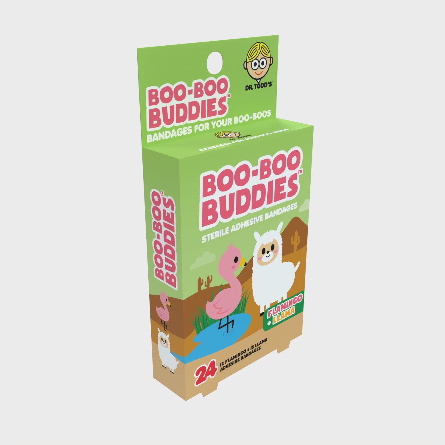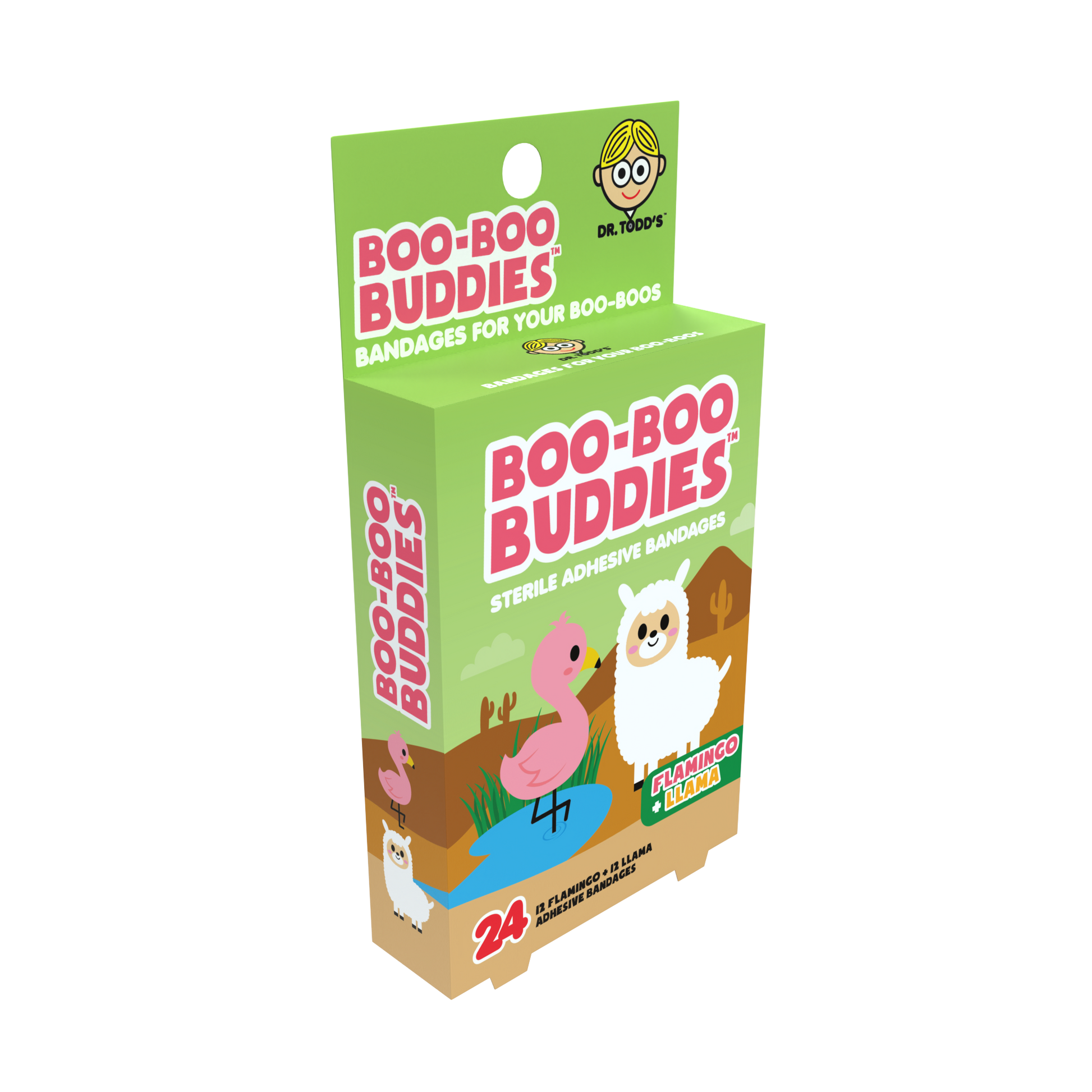 Flamingo & Llama Bandages for Kids – Waterproof, Latex-Free, 24 Count | Dr. Todd’s Boo-Boo Buddies®