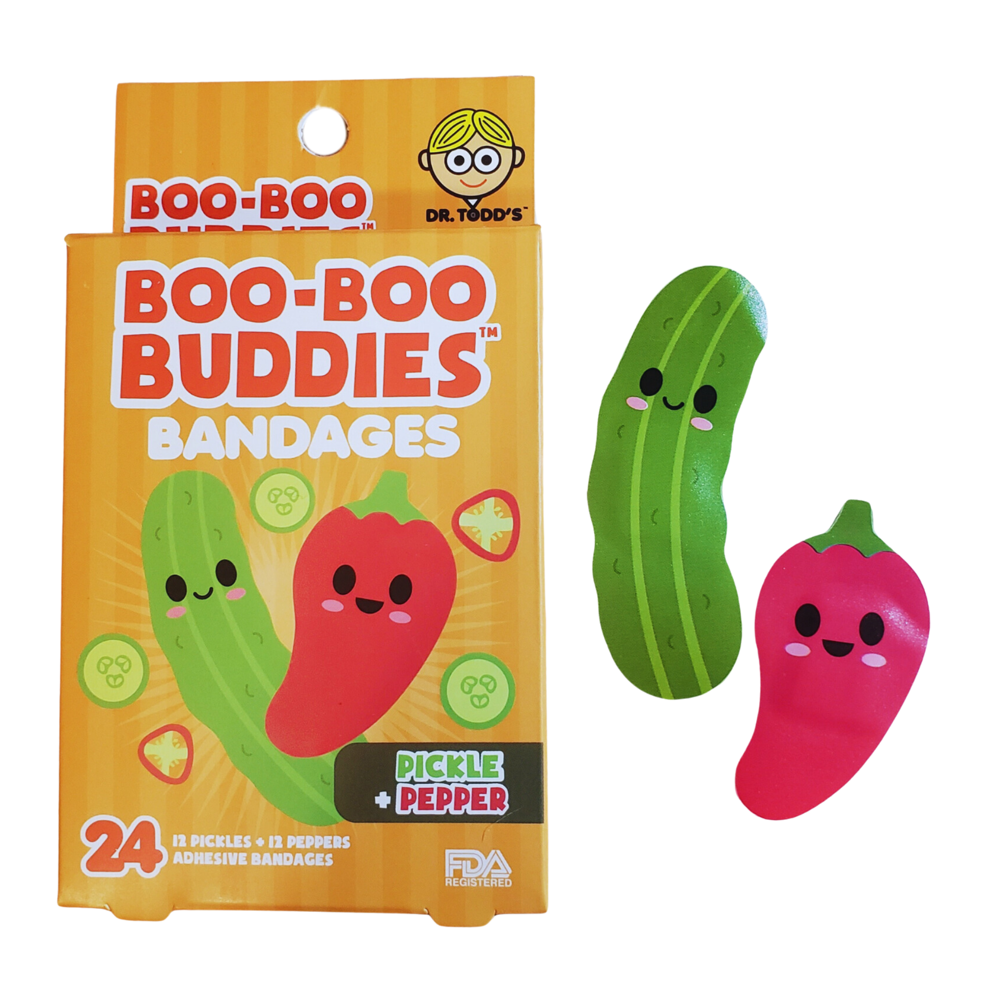 Pickle & Pepper Bandages for Kids – Waterproof, Latex-Free, 24 Count | Dr. Todd’s Boo-Boo Buddies®