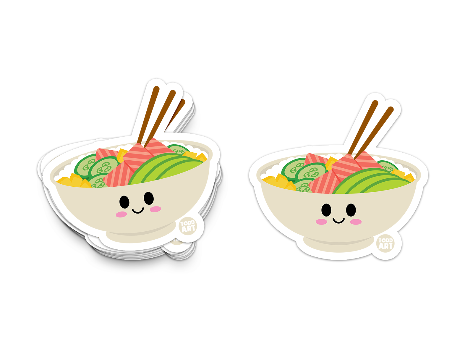 Boo Boo Buddies™ Poke Bowl Vinyl Sticker – Cute Kawaii Poke Sushi Bowl Waterproof 3″ Die‑Cut