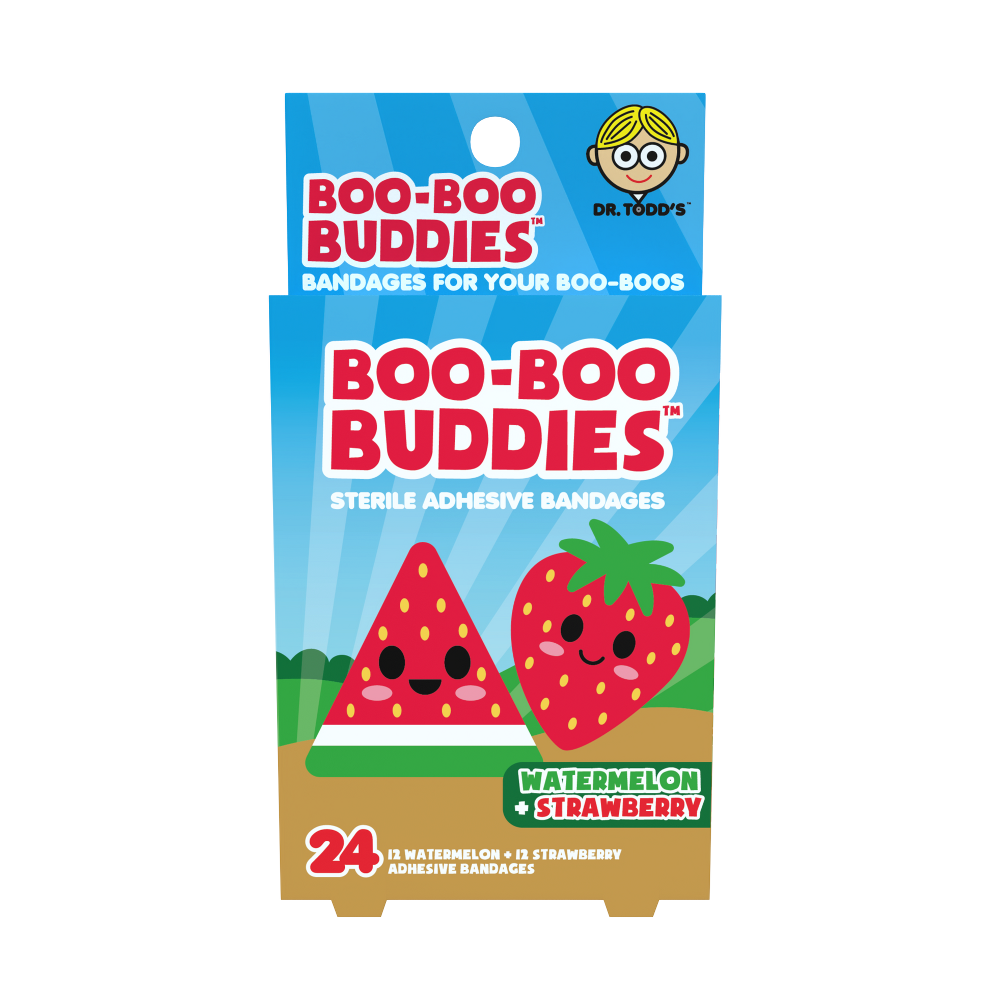 Watermelon & Strawberry Bandages for Kids – Waterproof, Latex-Free, 24 Count | Dr. Todd’s Boo-Boo Buddies®
